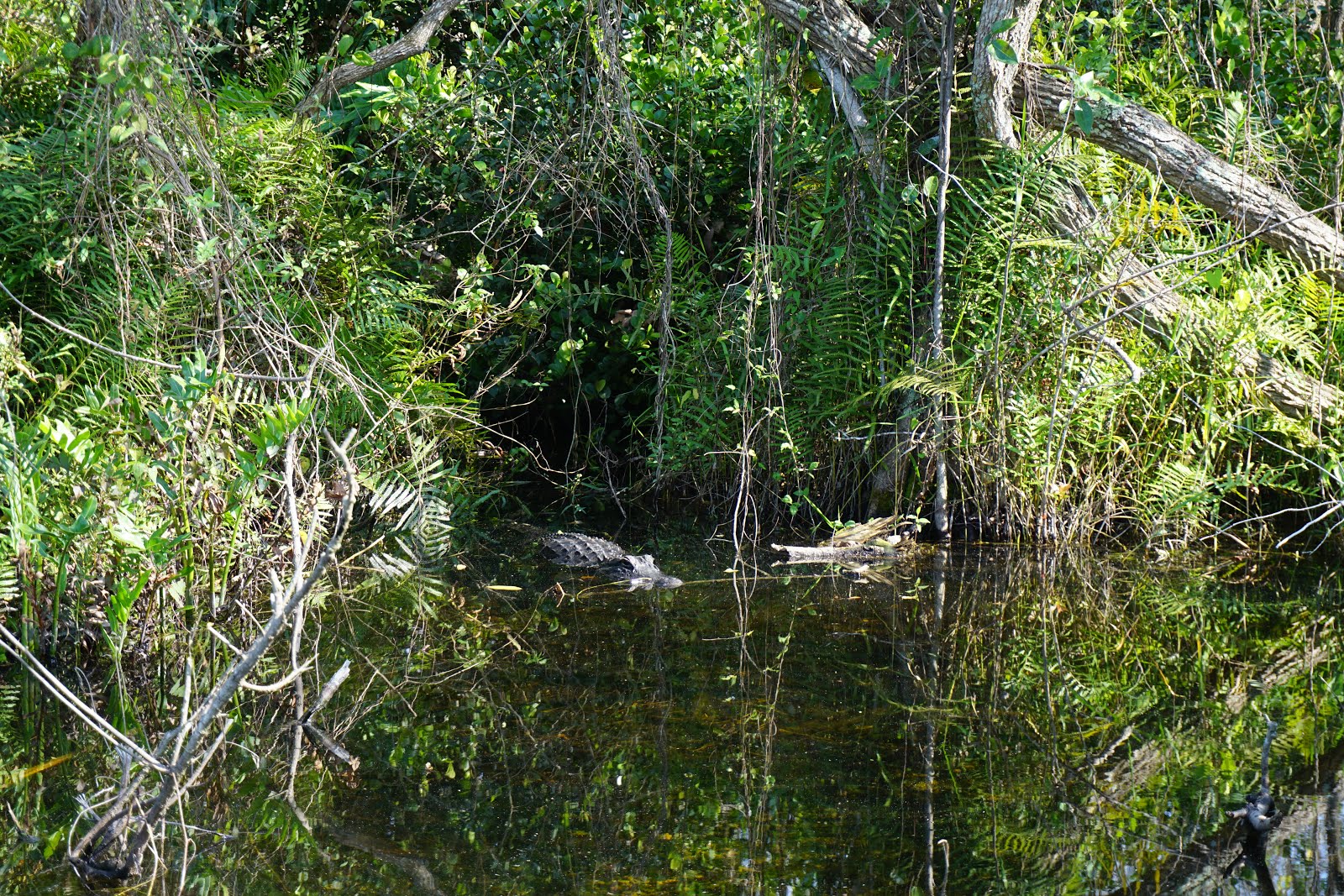 The Big Cypress Swamp Welcome Centre was just ahead on the left. Stopped in there, and sauntered along the boardwalk after being told the manatees were in the area. There were quite a few of them enjoying the warm waters, but, unfortunately, manatees do not photograph very well from above on a cloudy day! Managed to snap this pic of a snout coming up for air: