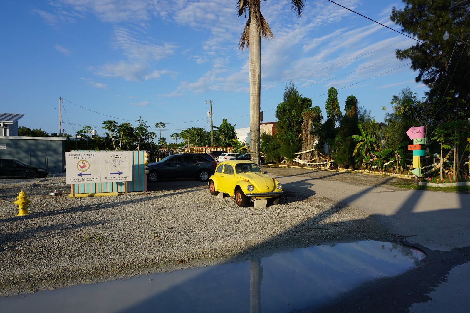 Knowing I wanted to get back to the campground before dark, I set about finding some stone crab claws in Everglades City. First stop – Camellia Street Grill. They have a Beetle out front…enough said! Unfortunately, they were out of stone crab! I decided on a slice of key lime pie, then drove up the street to City Seafood. Success! Lots of claw sizes to choose from – I went with a pound of the medium, since I don’t mind a bit of picking, and the honey mustard dipping sauce was a great addition.
