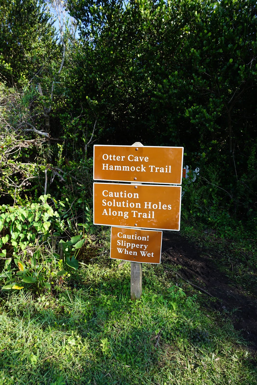 The first, the Bobcat Boardwalk, was very short and very close to the building. Pleasant enough, though, and probably peaceful when classes aren’t in session! The second trail was about a half mile down the tram path. The Otter Cave Hammock Trail. Interesting to walk through another type of ecosystem, but the group of kids I was following turned back halfway through and I probably should have taken their cue!