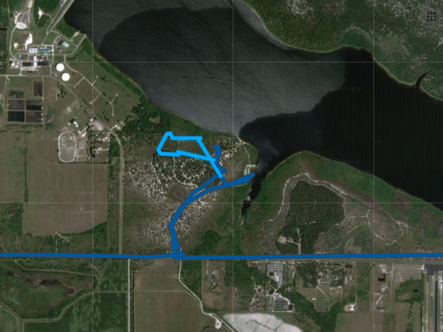 I still hadn’t heard anything from Camping World regarding the repairs, so I figured I may as well buy a Florida State Parks Annual Pass…I’ll be down here for a bit. Lake Manatee State Park seemed like an interesting place to stop, even though they don’t have any actual manatees here (they get asked the question enough that the ranger quickly produced a double-sided info sheet on where in Florida I COULD find the animals!). There were a couple of walking trails off the day-use car park, so I braved the slight chill in the air to go for a stroll. Looks like Google’s Location History got the gist of what I was up to:
